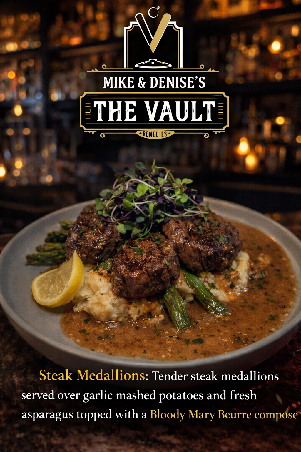 succulent tender organic 1/2 a chicken, roasted to perfection & infused with rosemary / thyme / garlic & yorkville’s favorite beer, busch light. served with sautéed spinach & garlic mashed potatoes with a lemon chicken gravy
